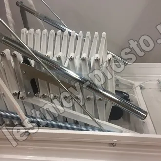 Автоматическая раздвижная ножничная чердачная лестница, с электромотором для дистанционного открывания.