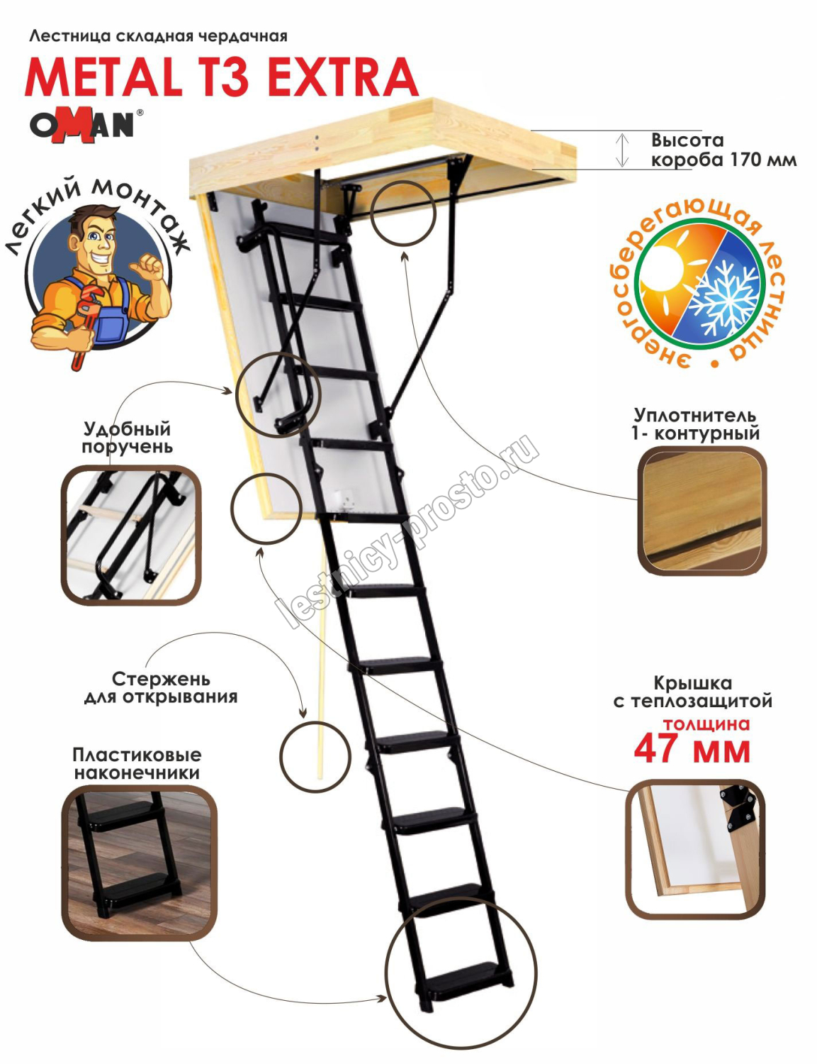 Лестница OMAN Metal T3 EXTRA 60×140 см, h-280 см
