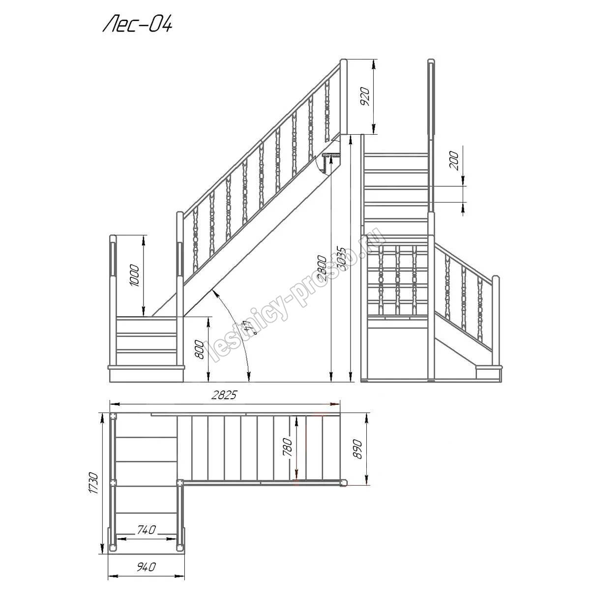 Деревянная межэтажная лестница ЛЕС-04, Лиственница