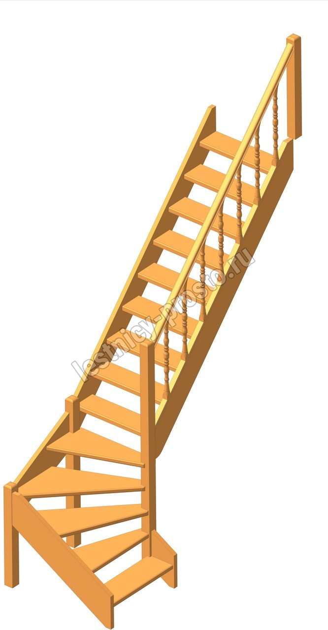 Деревянная межэтажная лестница ЛЕС-07 2880-3085 проем 2550-830, Бук