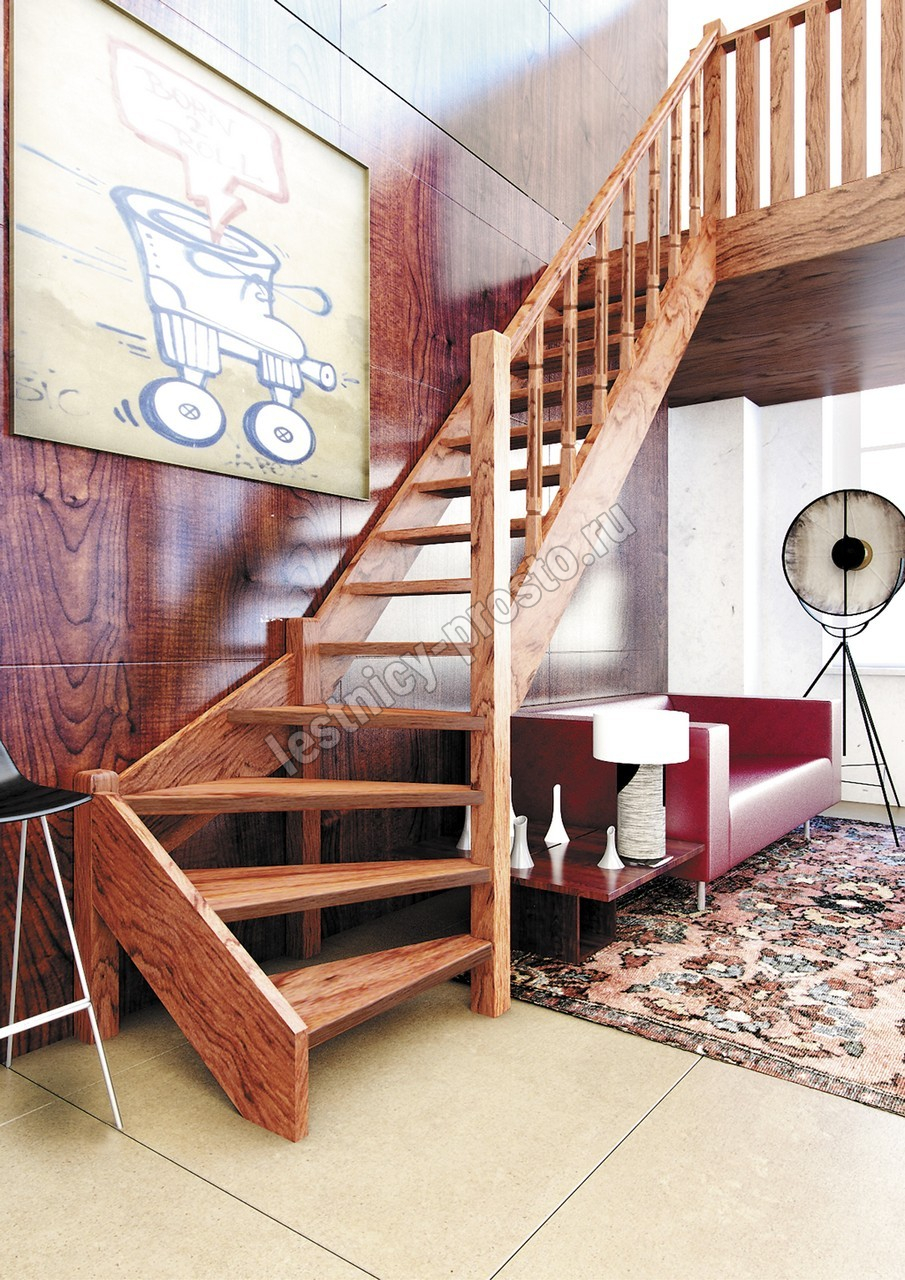 Деревянная межэтажная лестница ЛЕС-07 2880-3085 проем 2550-830, Лиственница