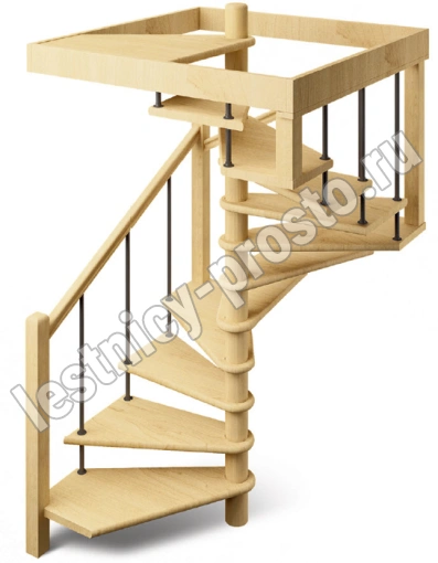 Компактная деревянная лестница с металлическими стойками перил. Легко собирается и занимает небольшое пространство на первом и втором этаже. Фиксированный квадратный короб на верхнем уровне обеспечивает дополнительную прочность конструкции. Монтаж осуществляется силами двух человек на объекте по указаниям, приведенным в паспорте на лестницу.
