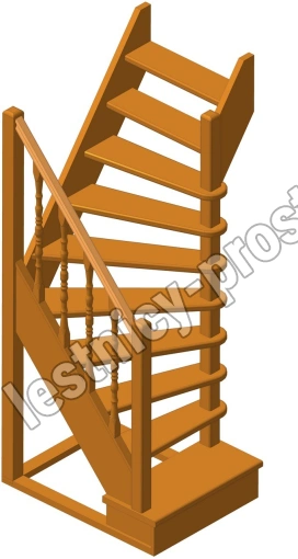 Деревянная межэтажная лестница ЛЕС-91 2250-2475 проем 1090-780, Лиственница