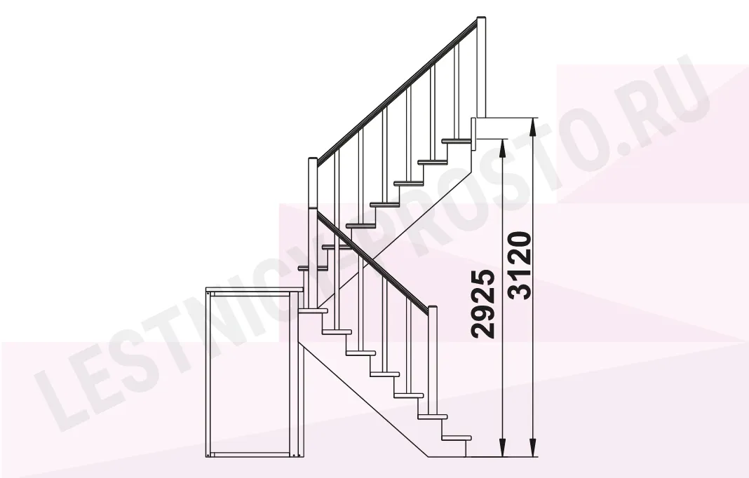 Схема лестницы К-004М/1 с поворотом налево