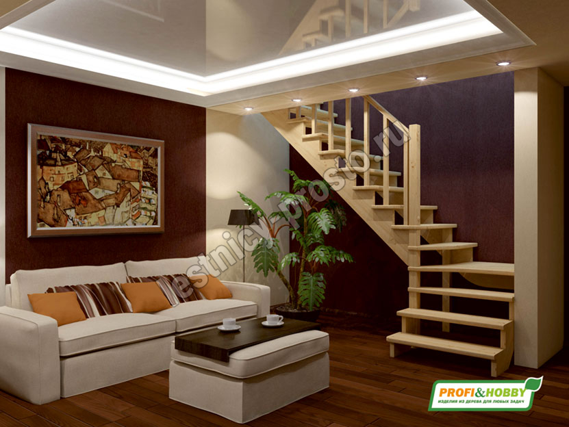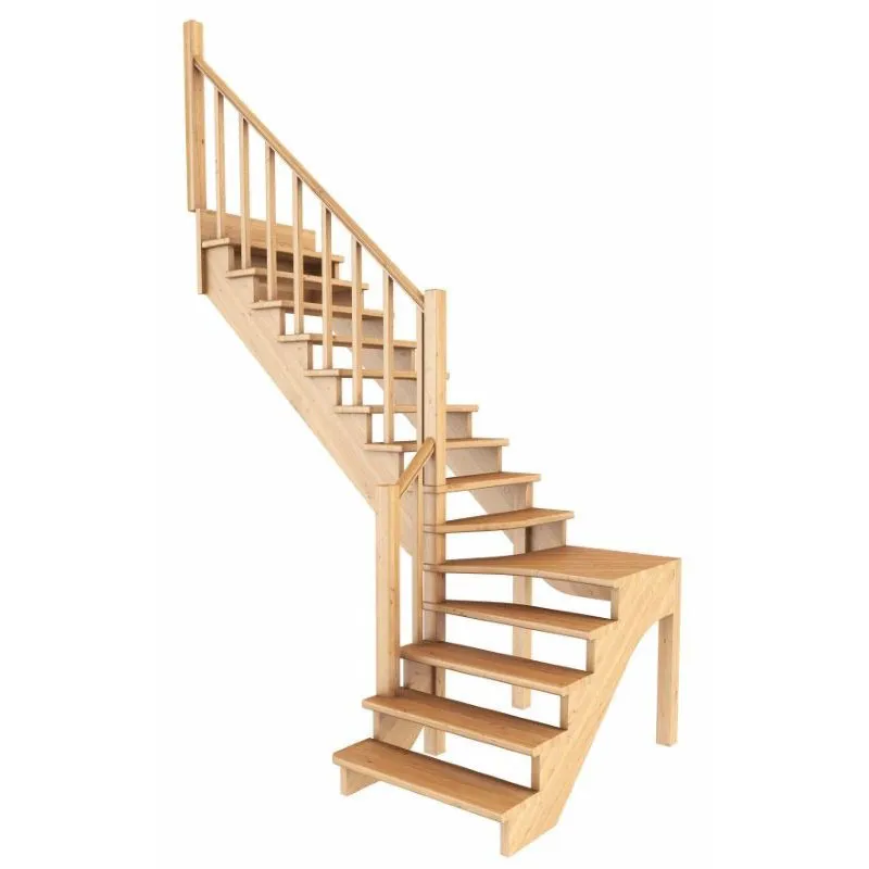 Ступени и поручень лестинцы изготовлены из бука, остальные элементы из сосны. Возможно изготовление данной модели полностью из бука. Базовый комплект включает в себя деревянные элементы лестницы и ограждения без какого-либо покрытия.