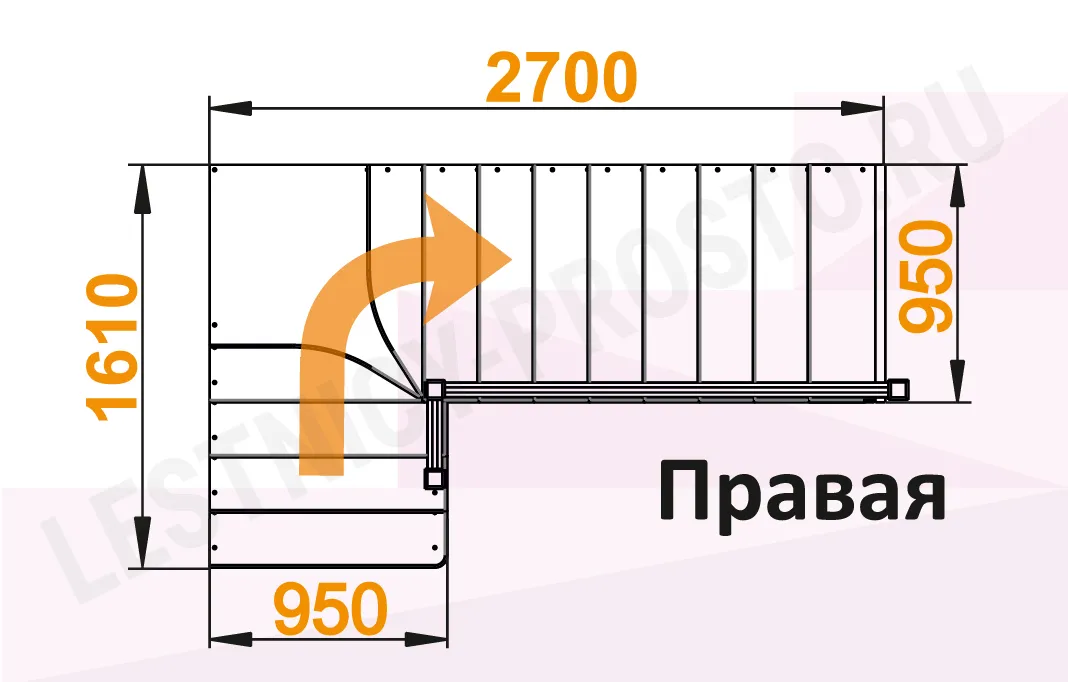 Схема лестницы К-031М/2 с поворотом направо