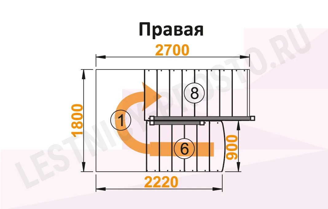 Схема лестницы К-004М/3 с поворотом направо