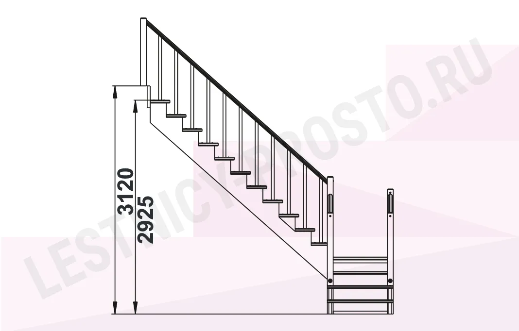 Базовый комплект включает в себя деревянные элементы лестницы с подступёнками и ограждения без какого-либо покрытия.