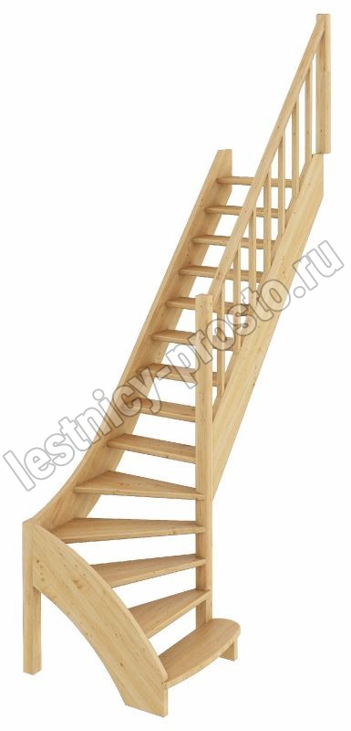 Базовый комплект включает в себя деревянные элементы лестницы с подступёнками и ограждения без какого-либо покрытия.