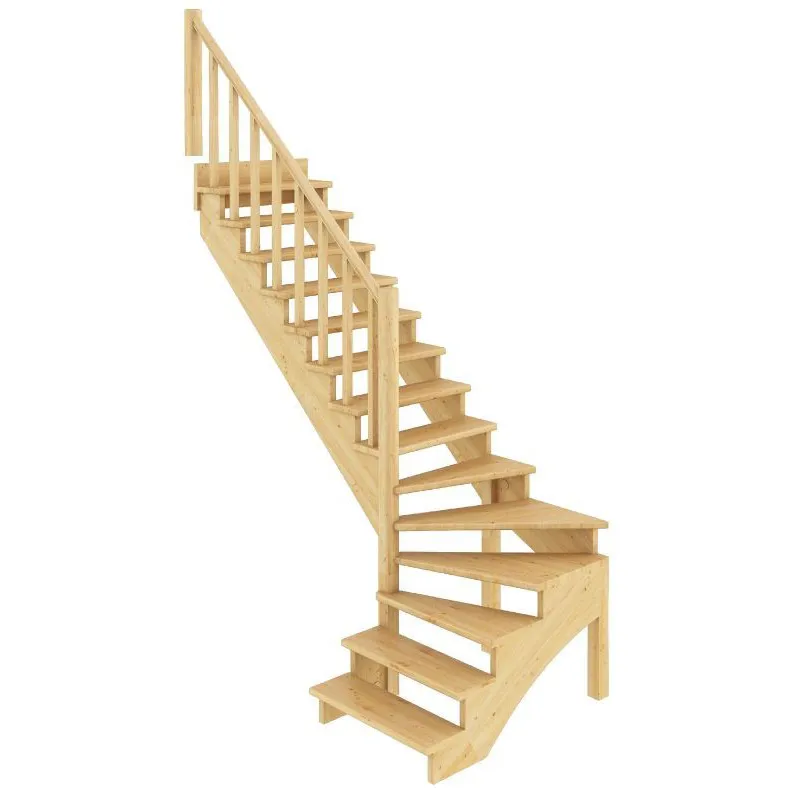 Ступени и поручень лестницы изготовлены из ясеня, остальные элементы из сосны.