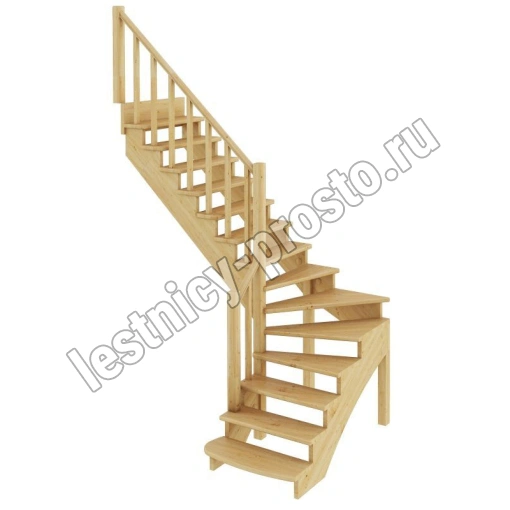 Базовый комплект включает в себя деревянные элементы лестницы с подступёнками и ограждение без какого-либо покрытия.