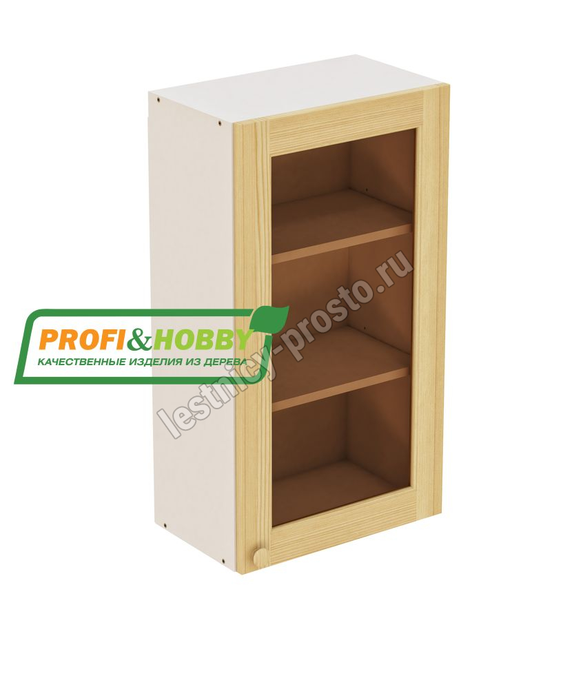 Шкаф навесной 500х340х960 + фасад сосна под стекло бесцветный акриловый лак