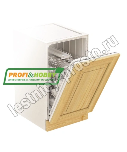 Фасад для посудомоечной машины изготовлен из 100% массива дерева, без шпона и без МДФ/ДСП.