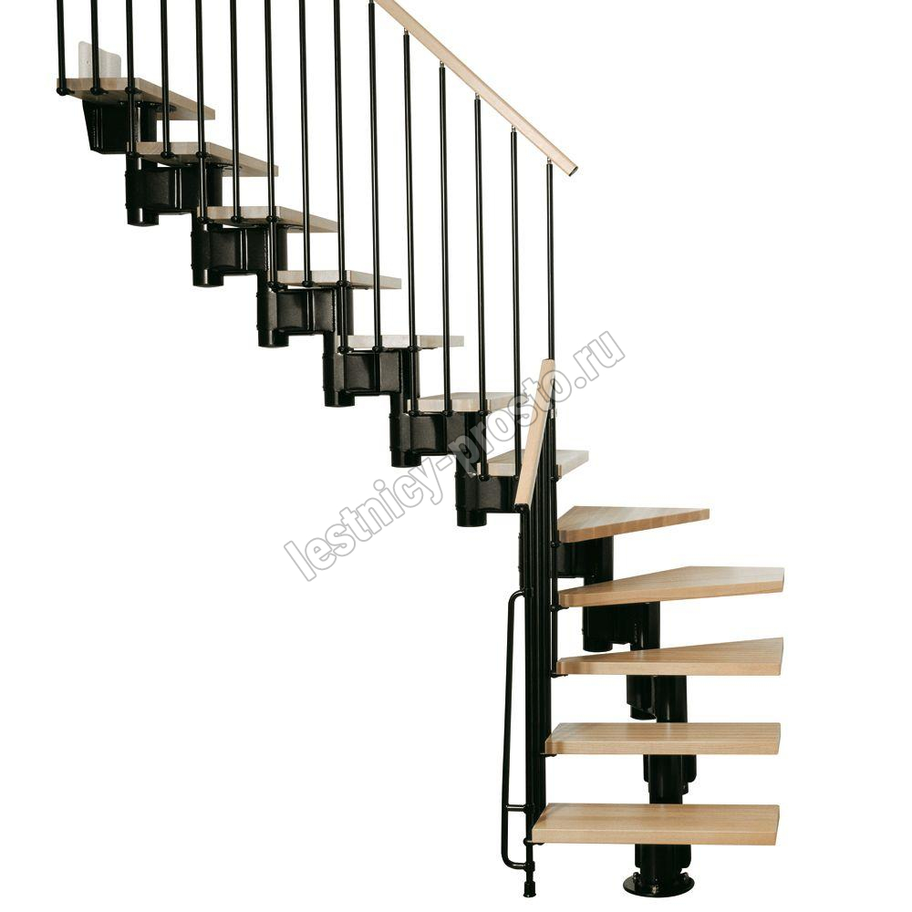 Красивая комфортная лестница с уникальной модульной конструкцией, которая позволяет собрать большое число модификаций, подходящих под ваш проём и другие условия помещения. Возможные варианты сборки лестницы смотрите в блоке "чертежи и схемы". При монтаже модульной лестницы KOMPACT, вы можете варьировать высоту шага и проступь, получив точную необходимую высоту и габариты. Лестница KOMPACT возможна в двух вариантах: с шириной марша 740 мм и 890 мм. Ступени выполнены из массива бука и покрыты качественным износостойким лаком. Базовая комплектация позволяет получить лестницу под высоты этажа в диапазоне 2250 - 3030 мм, кроме того, установив дополнительный комплект увеличения высоты, можно поднять высоту лестницы до 3730 мм. Каркас и стойки ограждения выполнены из пластифицированного металла.