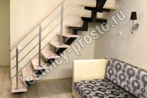 Лестница PROSTO MONO прекрасно подходит для интерьеров с минималистичным дизайном, дизайном в стиле лофт или хайтек. Основой лестницы служит цельносварной центральный косоур, который обеспечивает надёжную прочность конструкции и "парящий" дизайн, лестница с таким каркасом в интерьере смотрится легко и воздушно.