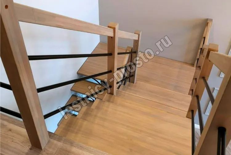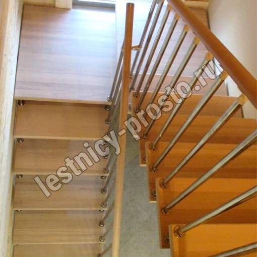Ступени лестницы изготовлены из лиственницы категории А/В паркетной склейки без какого-либо покрытия. Вы можете заказать у нас предварительную профессиональную покраску деревянных элементов материалами БИОФА в широкий спектр цветов (стоимость зависит от количества ступеней).