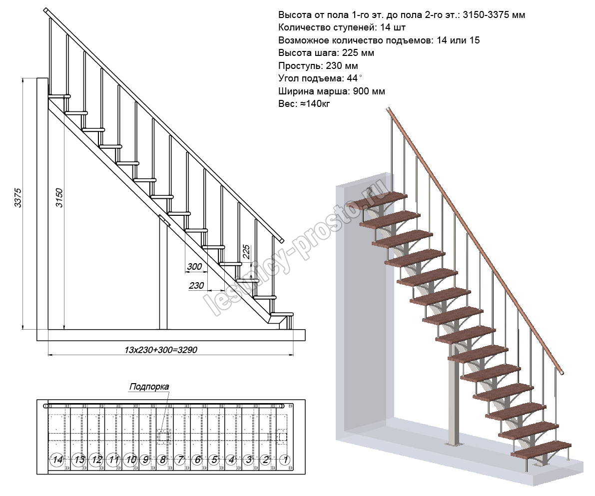 - таким образом вы получаете возможность увеличить общую высоту подъёма лестницы до необходимой.