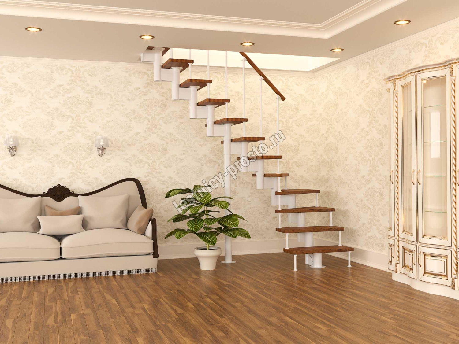 Модульная лестница PROSTO MODULE Г-образная, h337.5, лиственница