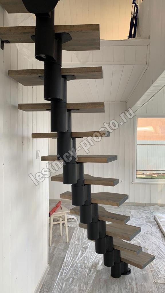 Лестница Prosto Urban Black гусиный шаг 700 мм, h198-288 см (11 ступеней), дуб