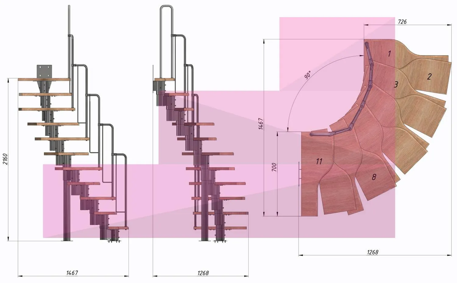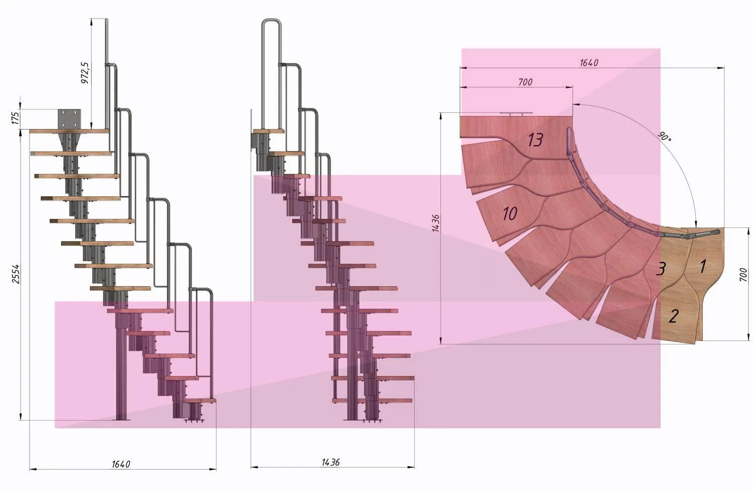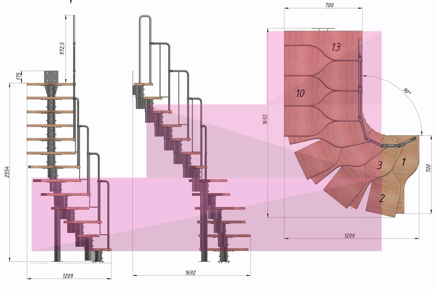 - Регулируемый по высоте в пределах 180-240 мм модуль. Большой диаметр и толщина металла деталей обеспечивают жесткость и прочность конструкции. Регулировка каждого модуля по высоте позволяет легко приспособить лестницу под ваше помещение.