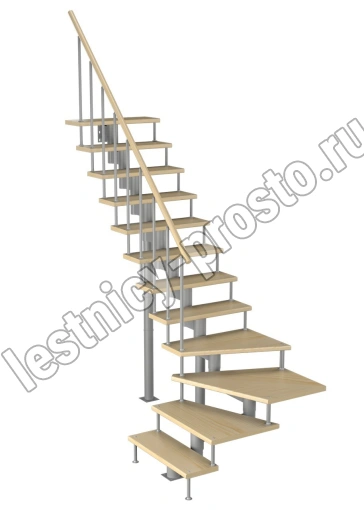 Модульная лестница Фаворит 180 2160-2280, Серый, Бук, Нержавеющая сталь