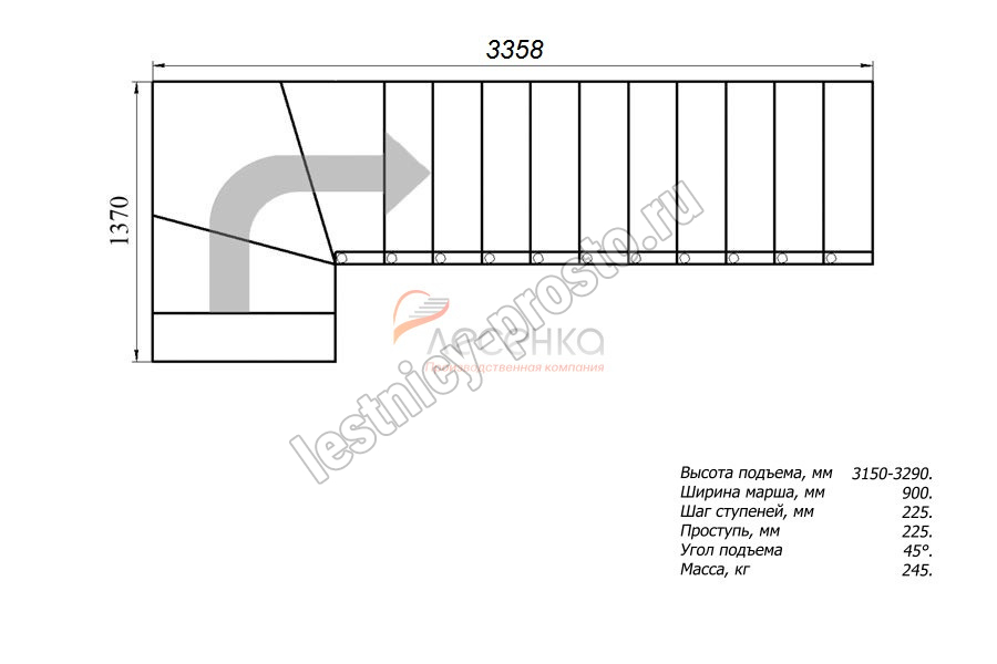 Модульная лестница Фаворит 225 3150-3290, Белый, Лиственница, Нержавеющая сталь