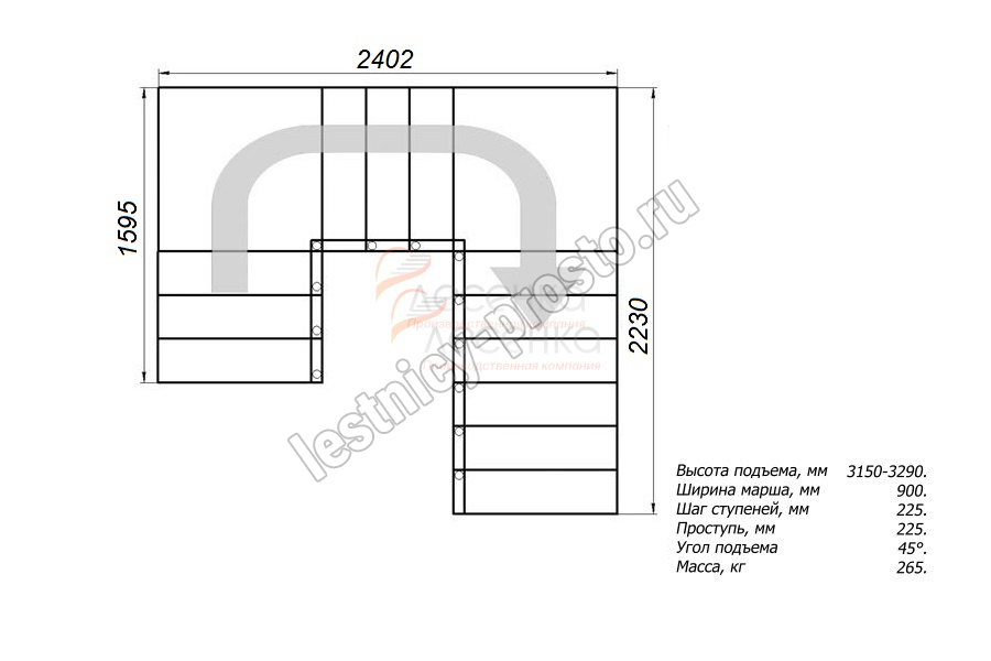 Модульная лестница Комфорт 225 3150-3290, Черный, Сосна, Нержавеющая сталь
