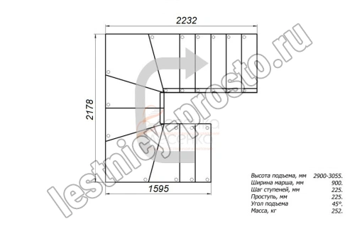 Высота лестницы 2925 - 3055 мм