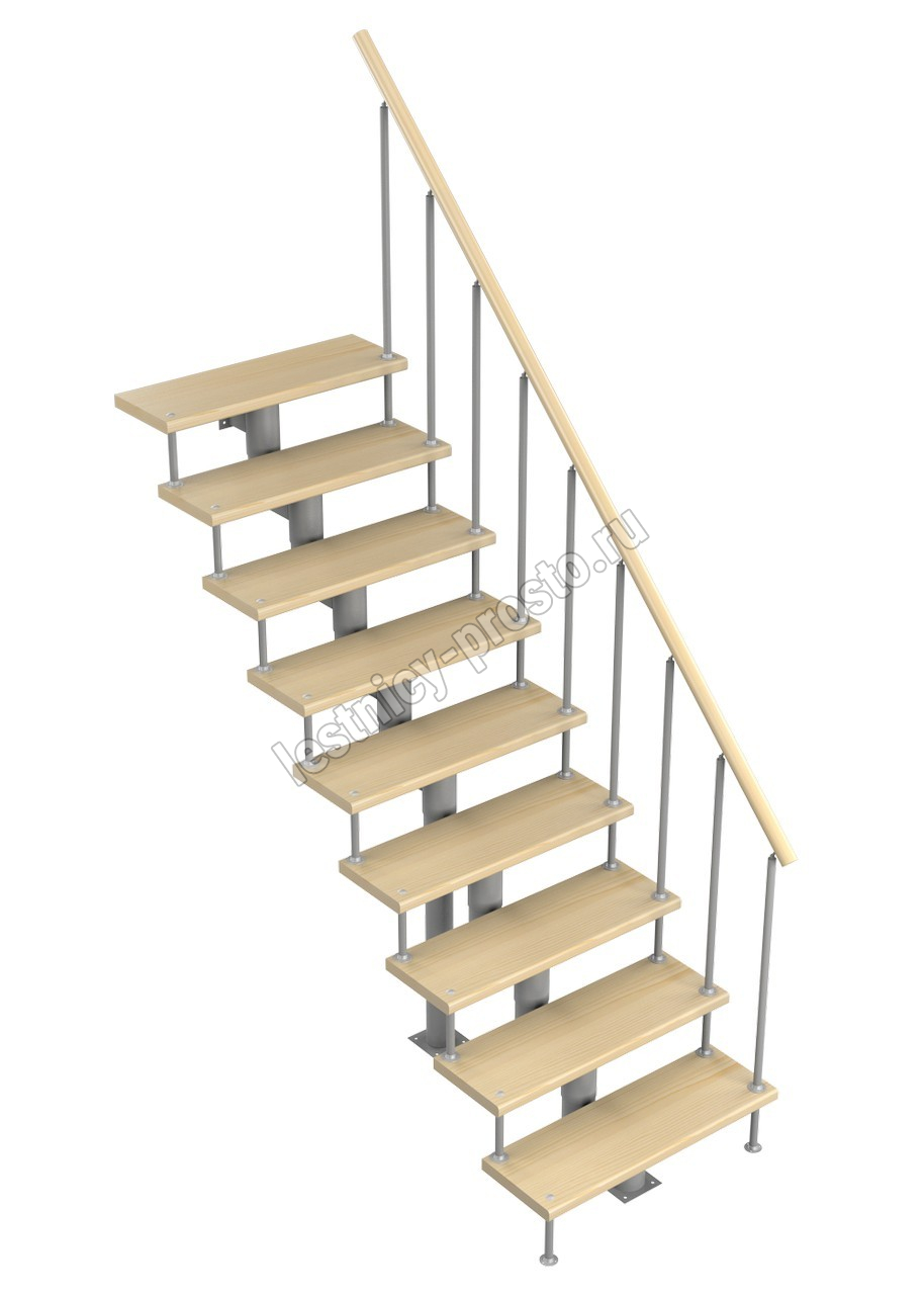 Модульная лестница Стандарт 2025-2115, Серый, Сосна, Нержавеющая сталь