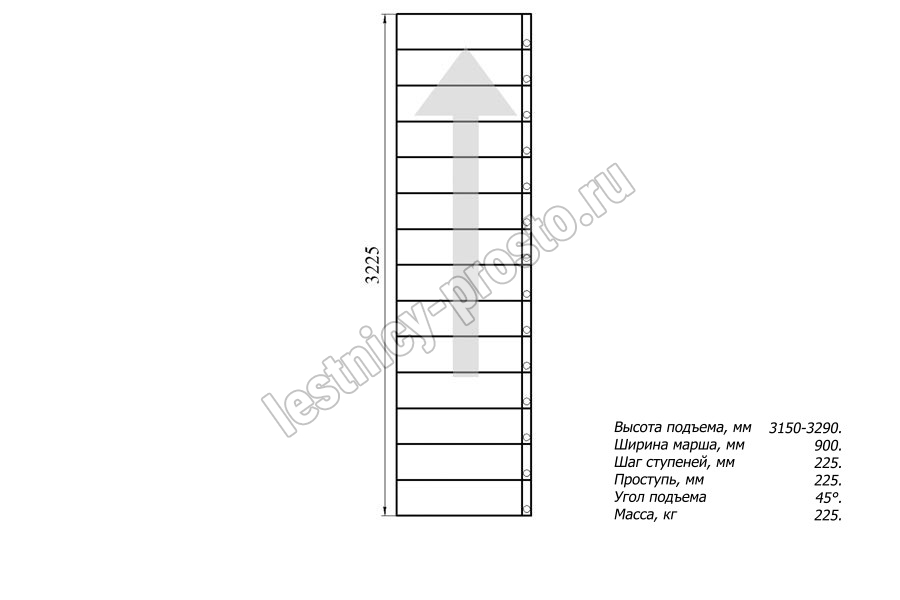 Высота лестницы 3150 - 3290 мм