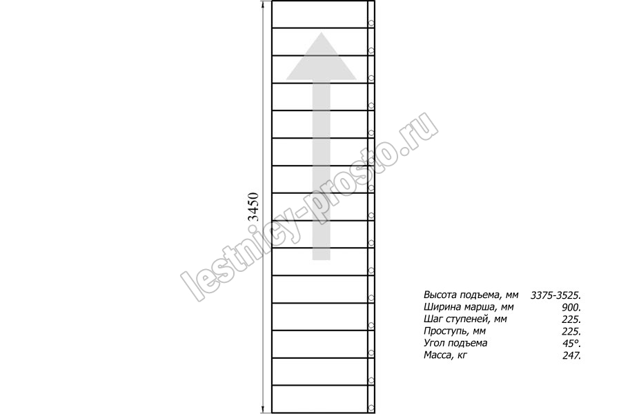 Высота лестницы 3375 - 3525 мм