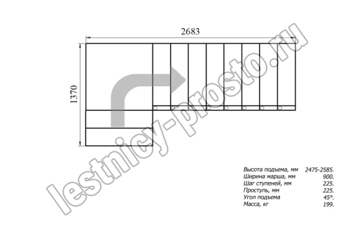 Модульная лестница Статус 225 2475-2585, Серый, Лиственница, Нержавеющая сталь