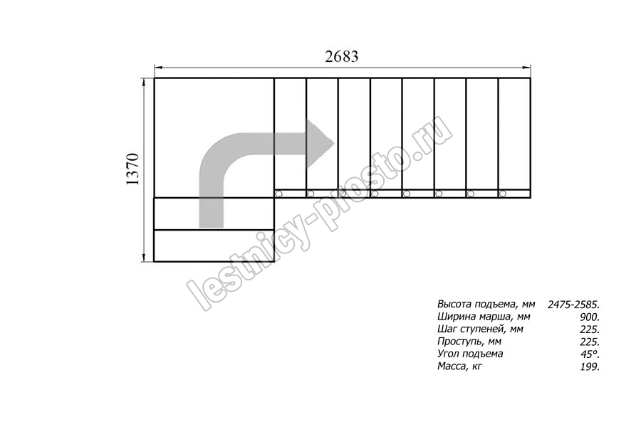 Модульная лестница Статус 225 2475-2585, Серый, Сосна, Крашеная, Без Ступений