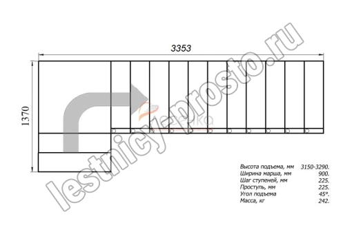 Модульная лестница Статус 225 3150-3290, Серый, Сосна, Крашеная, Без Ступений