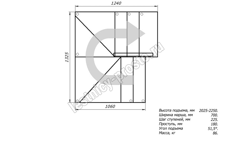 Модульная малогабаритная лестница Эксклюзив 2025-2250, Серый, Сосна, Нержавеющая сталь