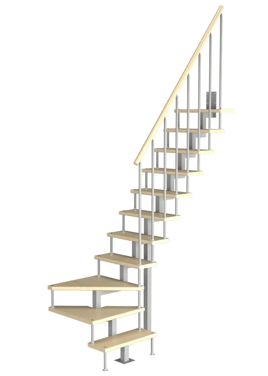 Модульная малогабаритная лестница Компакт 2475-2700, Серый, Бук, Нержавеющая сталь