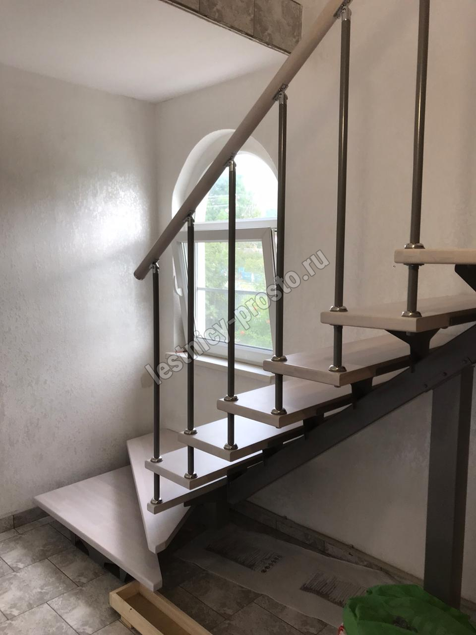 | Лестница PROSTO MONO Г-образная h315 см, ступени хвоя |