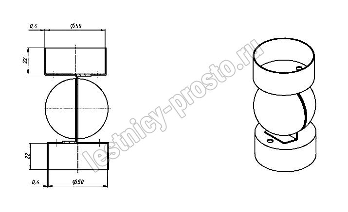 Шарнир для поручня Ø 50 мм, толщина 0,4 мм