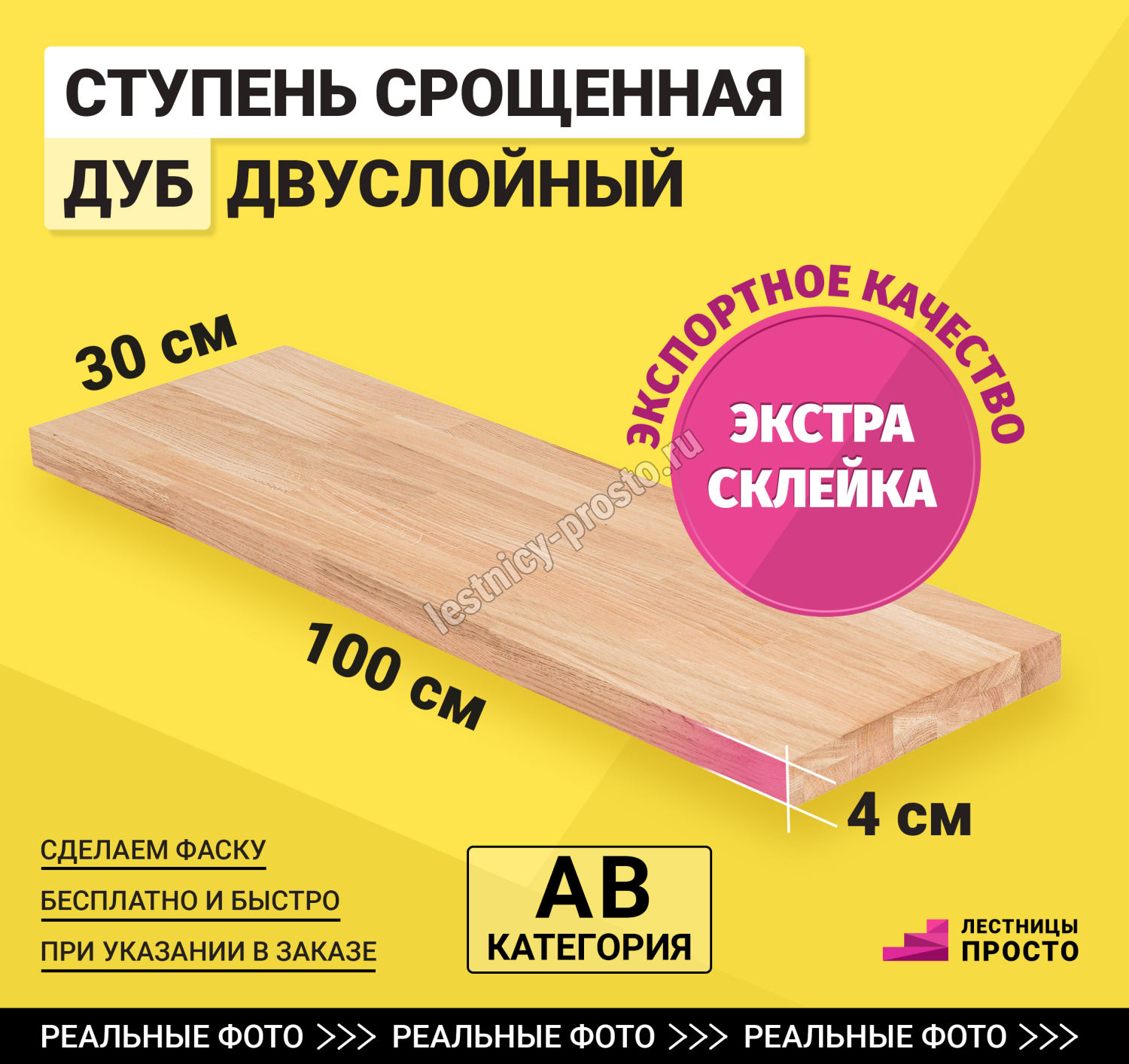 Базовая ступень не имеет фасок, если вам нужна фаска, укажите на это в комментарии к заказу - мы скруглим одно ребро ступени и это совершенно не повлияет на сроки доставки и стоимость.