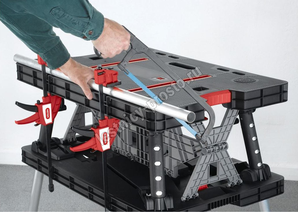 Складной верстак KETER - это передвижное рабочее место. Изготовлен из пластика устойчивого к истиранию и высоким температурам. Складная конструкция позволяет быстро подготовить верстак к использованию. Большая рабочая поверхность выдерживает нагрузку до 453 килограмм. В сложенном виде верстак занимает совсем мало места.
