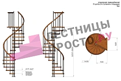 Винтовая лестница Prosto Spiral Black D140см, h325.7-369.8 см, бук