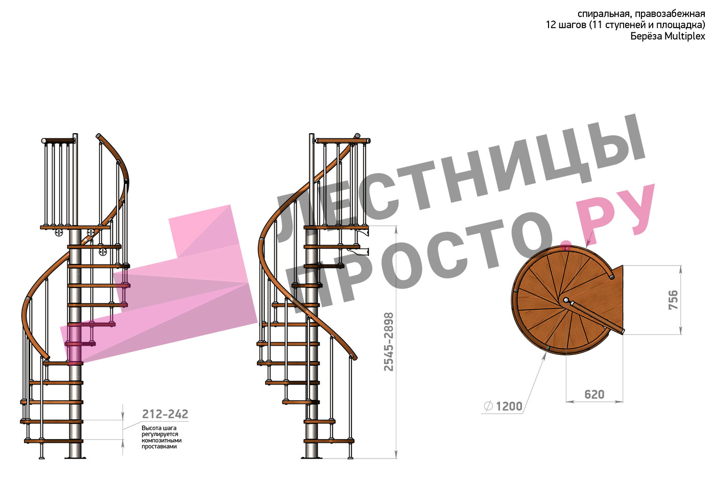 Лестница легко подгоняется по высоте благодаря композитным вставкам в каждом модуле, вариант с 11 ступенями адаптируется под высоту в пределах от 2520 до 2760 мм.