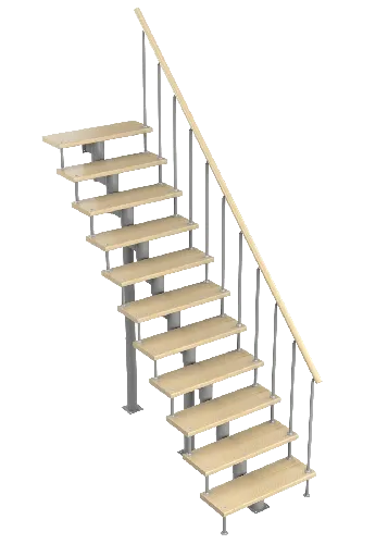 Элементы каркаса, ограждение, ступени, площадка, необходимый для сбора лестницы крепёж.