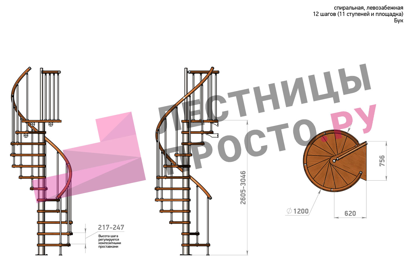 | Винтовая лестница Prosto Spiral White D120см, h303.9-348,1 см, бук |