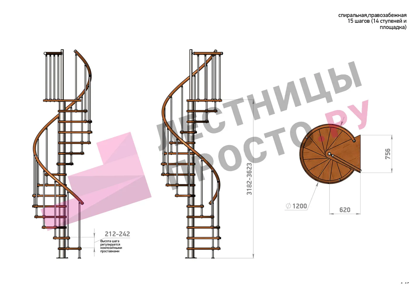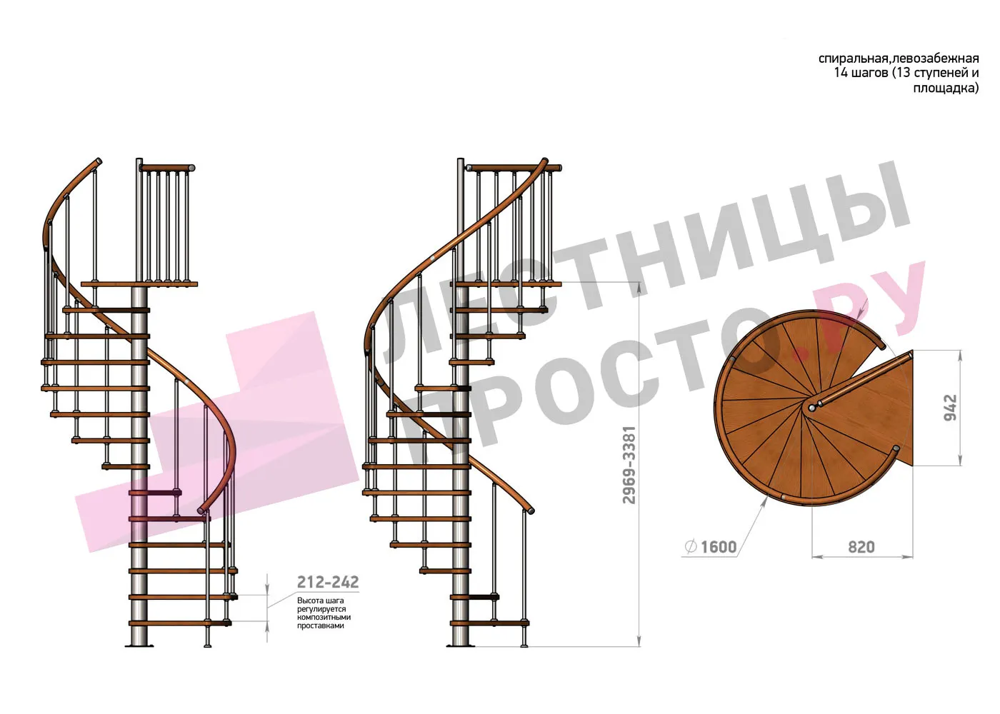 | Винтовая лестница Prosto Spiral White D160см, h318.2-362.3 см |
