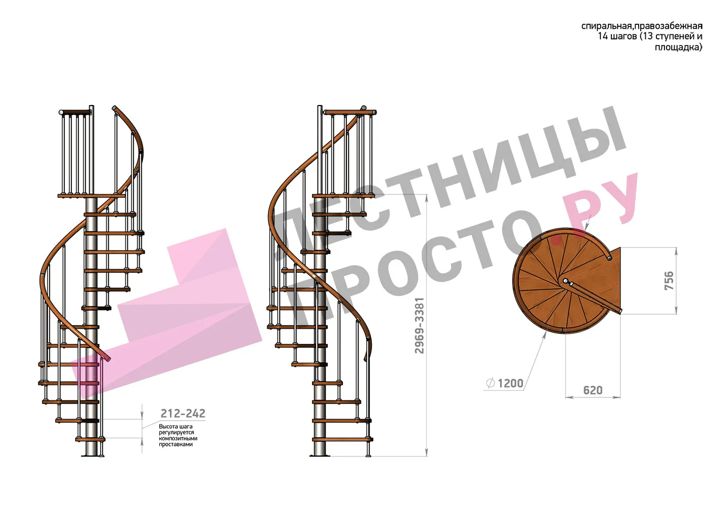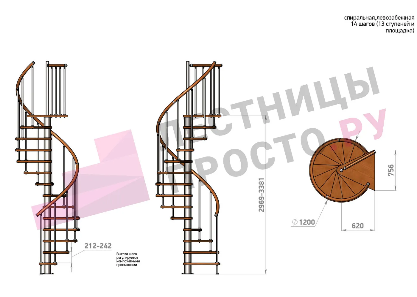 | Винтовая лестница Prosto Spiral White D120см, h275.7-313,9 см |