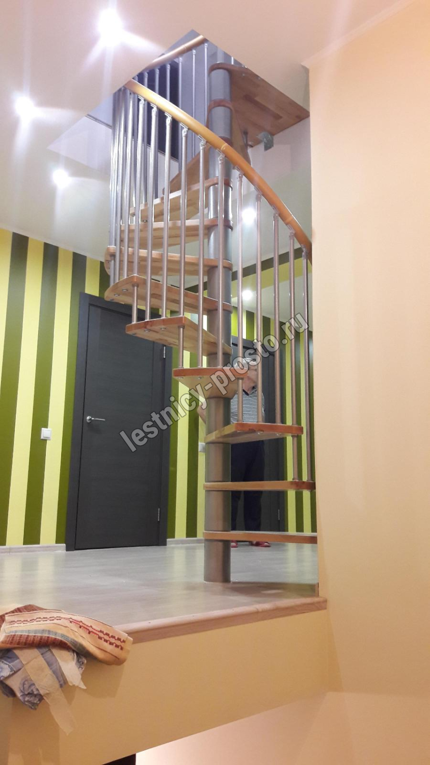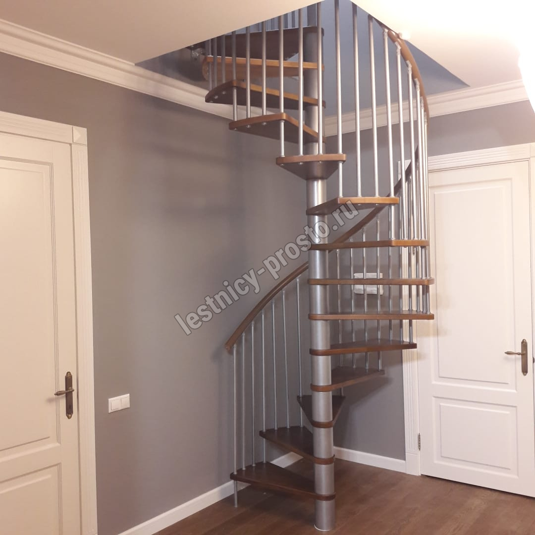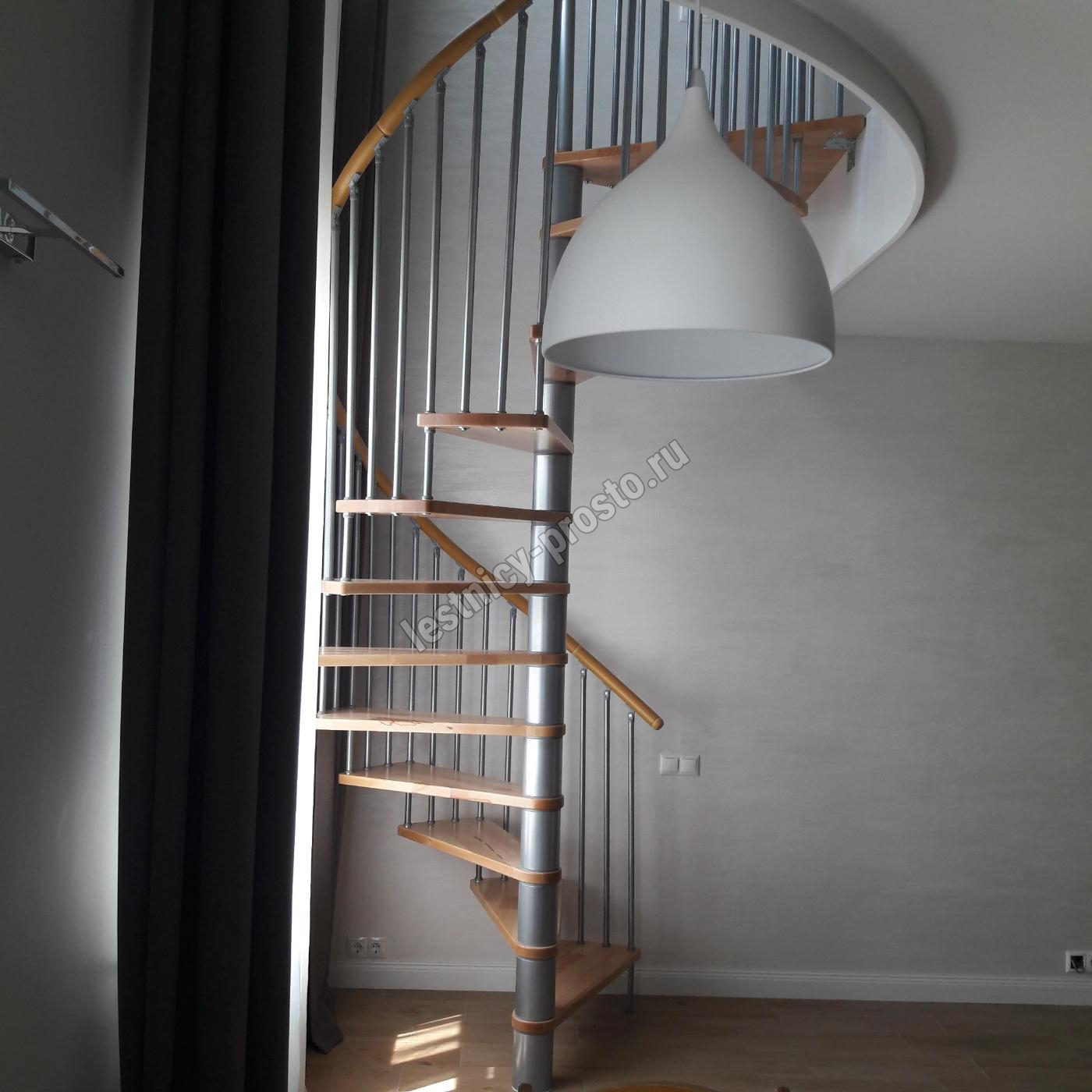 Винтовая лестница SPIRAL WOOD d140 см, серебро, лакированный дуб