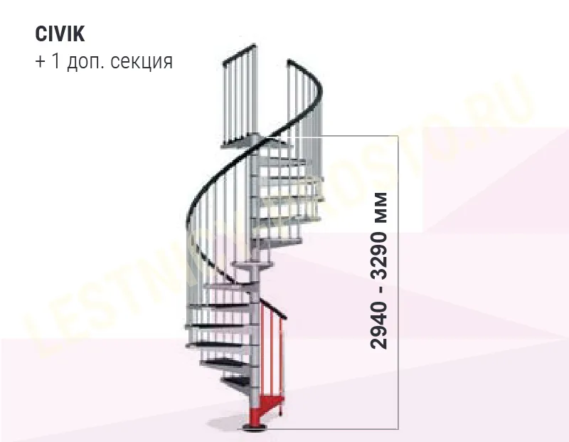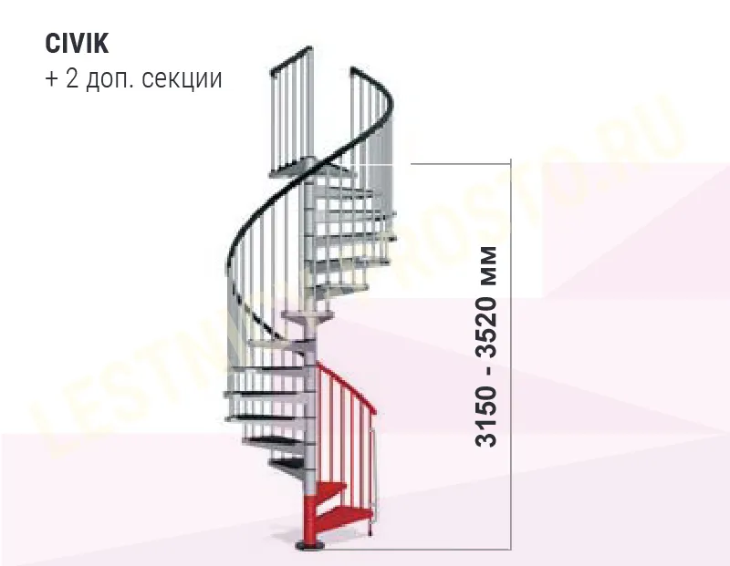 Высота лестницы регулируется при установке. С помощью специальных дополнительных секций, высоту лестницы можно увеличить до 3760 мм. (Секции покупаются отдельно).