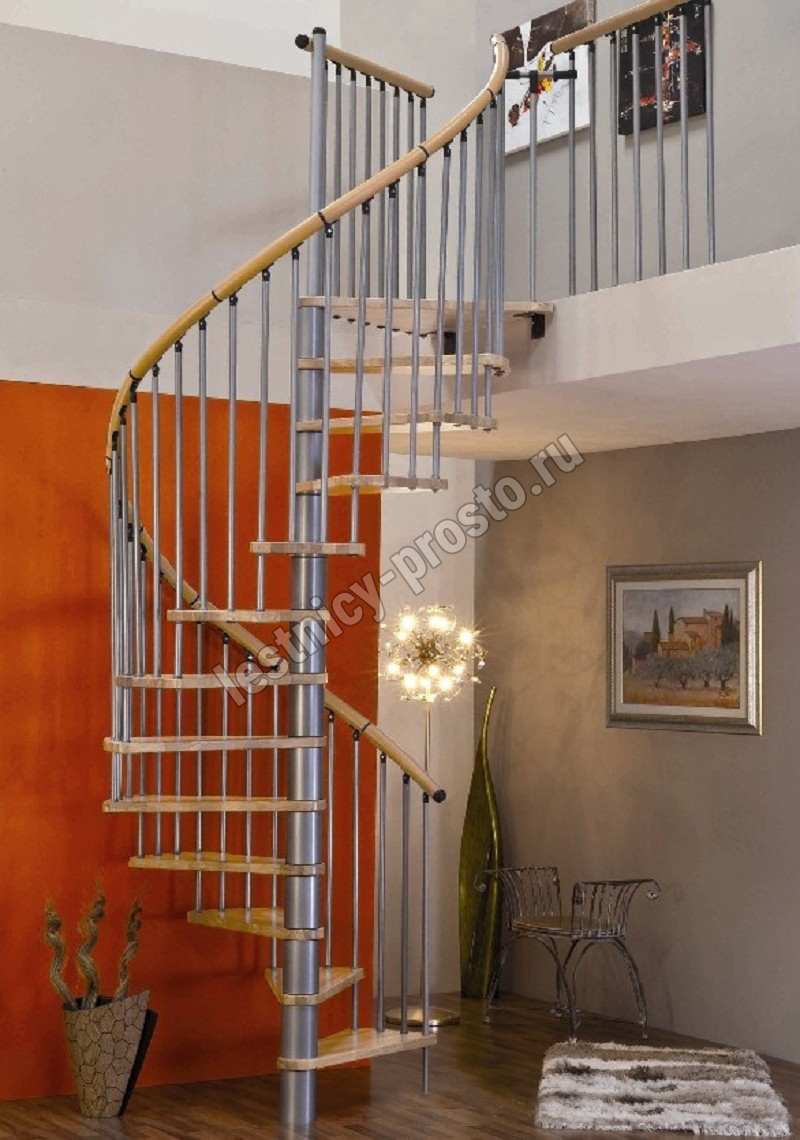 Поручень изготовлен из массива дуба в тон ступеням. Поручень и ступени лестницы покрыты износостойким защитным лаком.