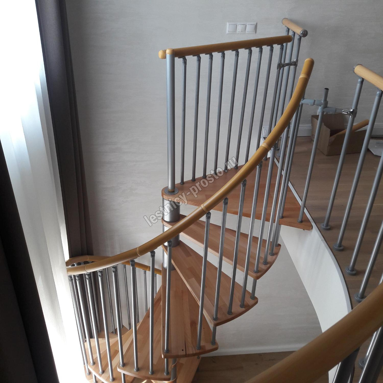 Винтовая лестница SPIRAL WOOD d140 см, серебро, лакированный бук